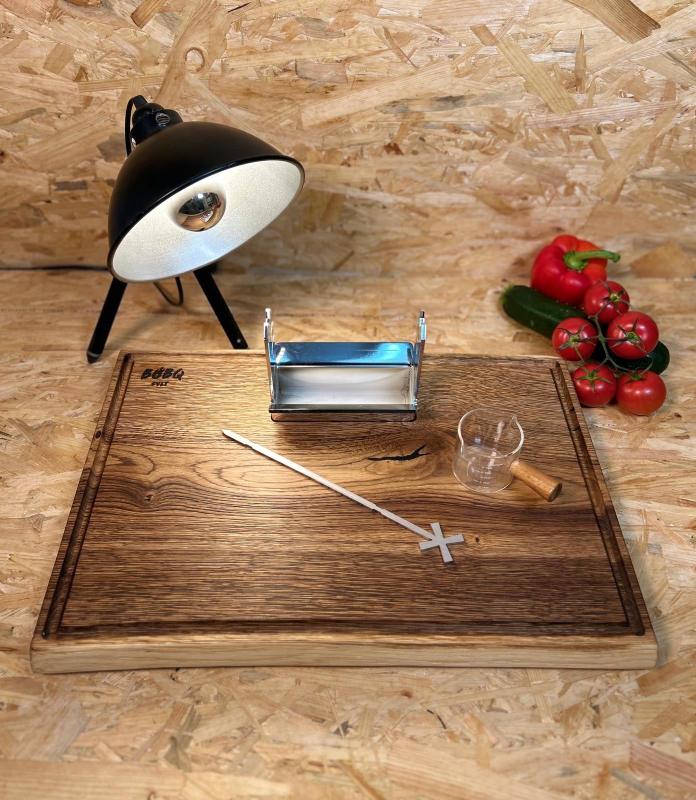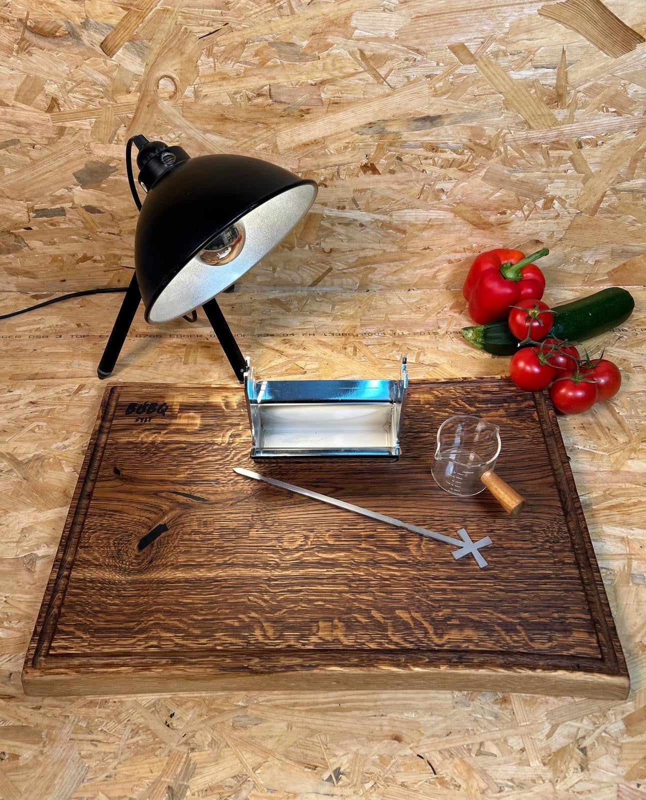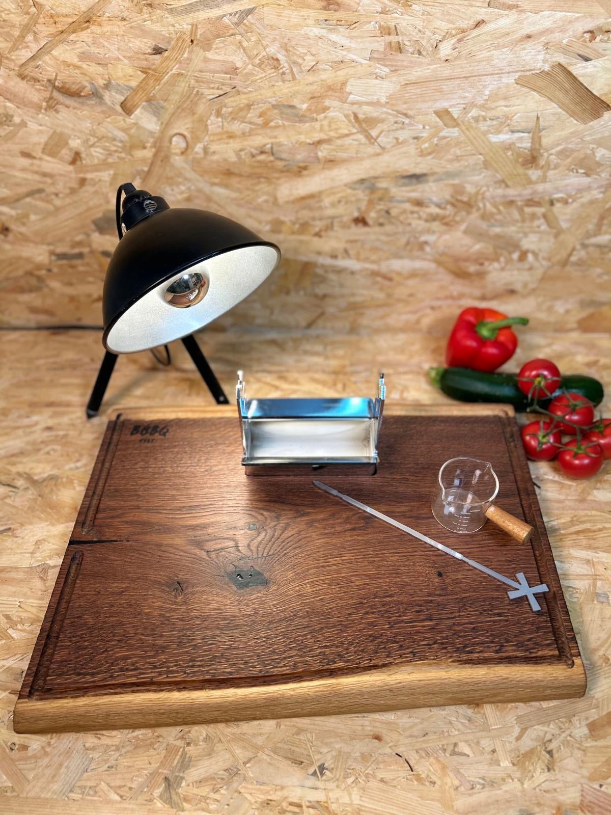 Die Brett sind je nach Unikat etwas größer als unsere klassischen Bretter, damit hast du noch mehr Platz um neben dem Fleisch deine Saucen, Sidedishes und mehr direkt auf dem Brett anzurichten.
