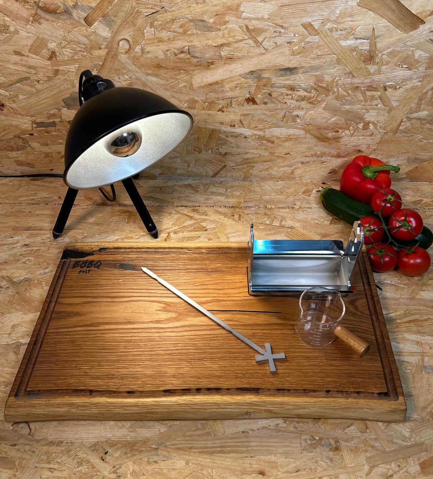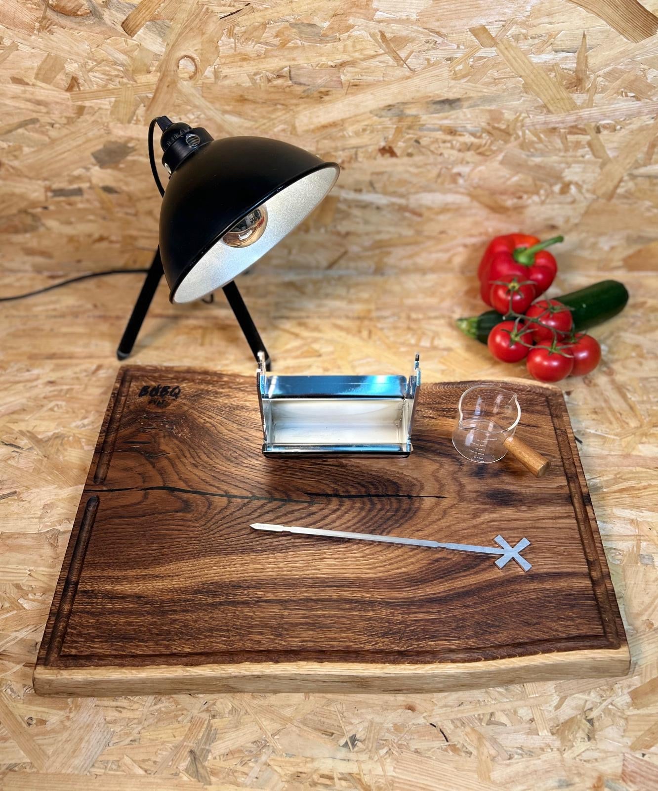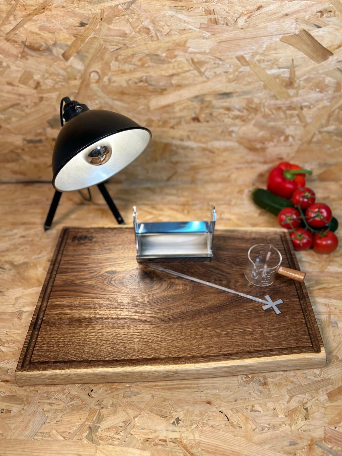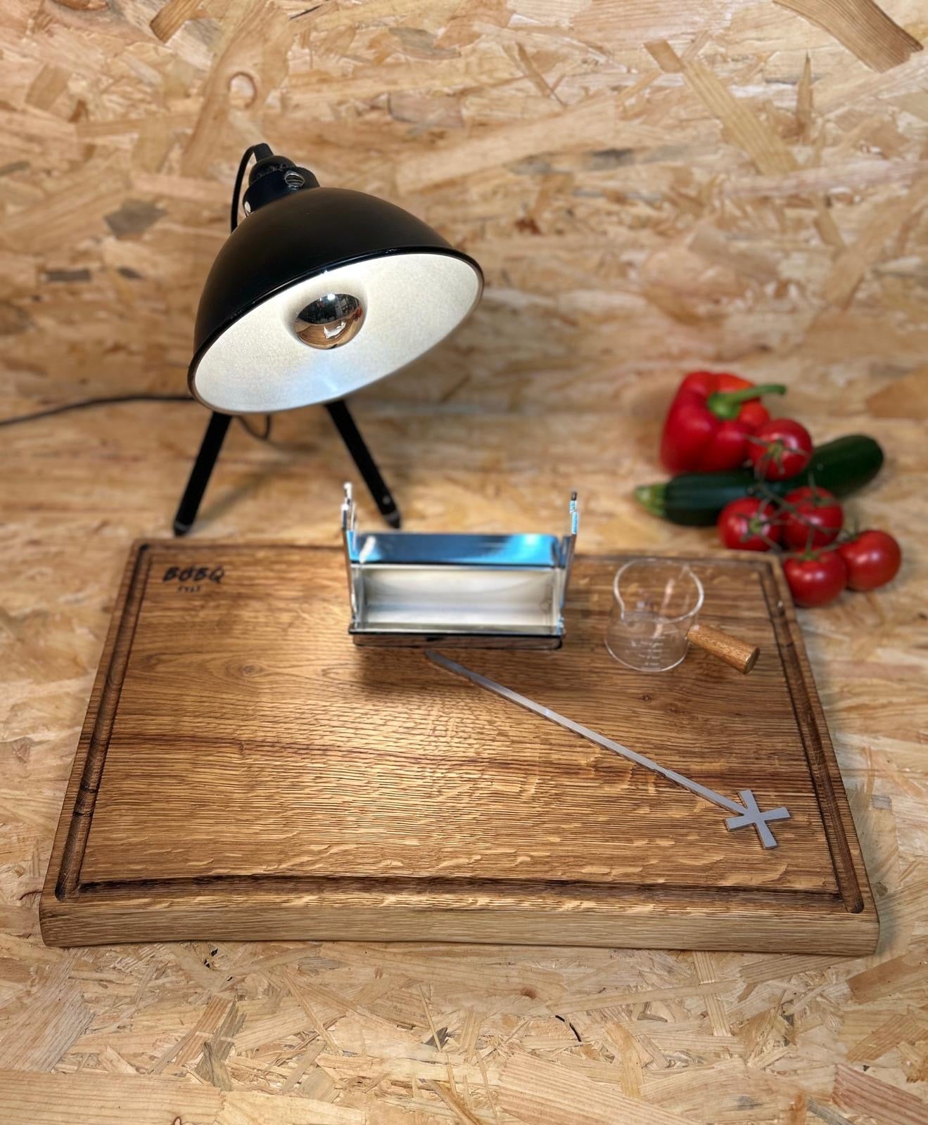 Die Brett sind je nach Unikat etwas größer als unsere klassischen Bretter, damit hast du noch mehr Platz um neben dem Fleisch deine Saucen, Sidedishes und mehr direkt auf dem Brett anzurichten.