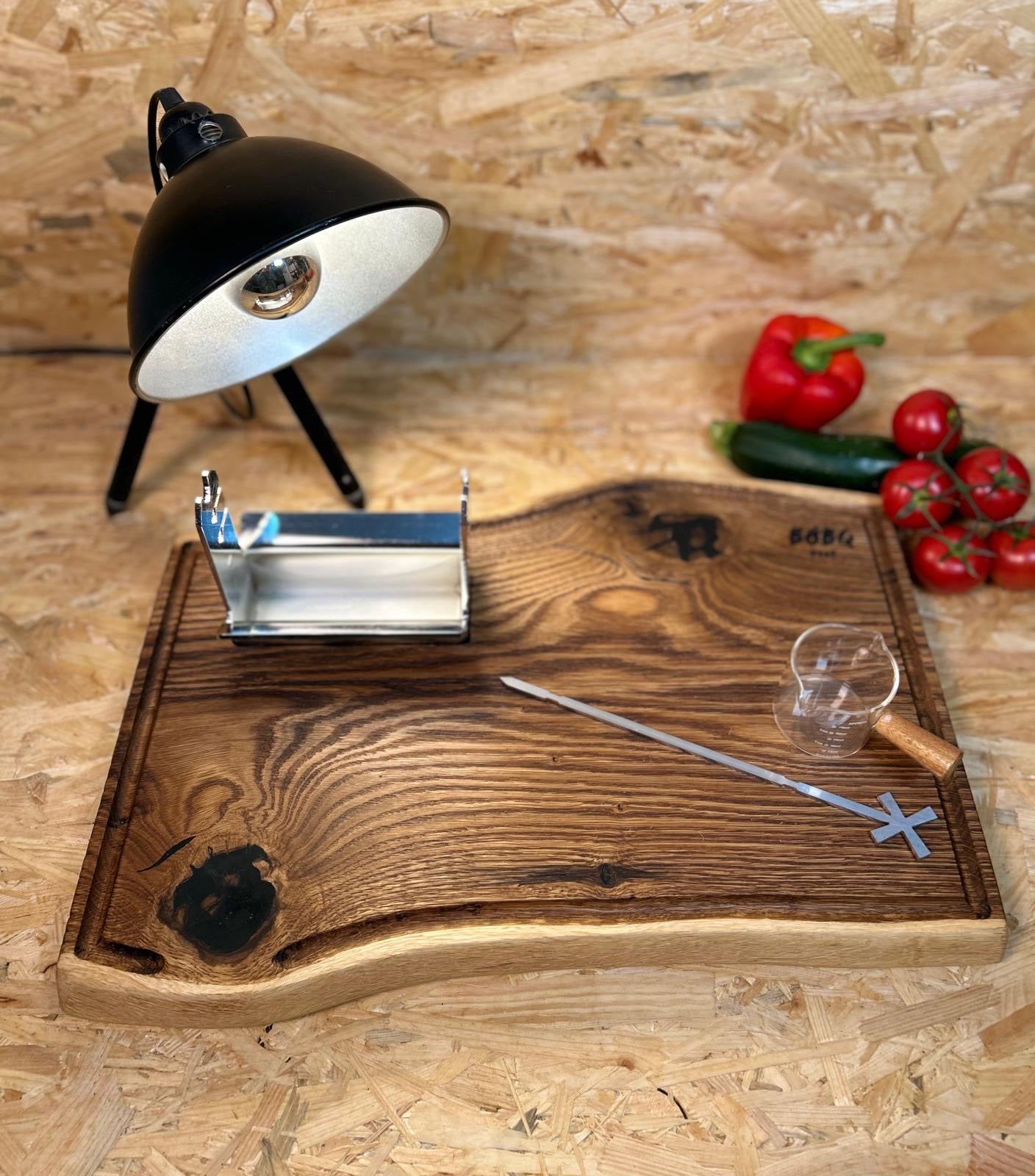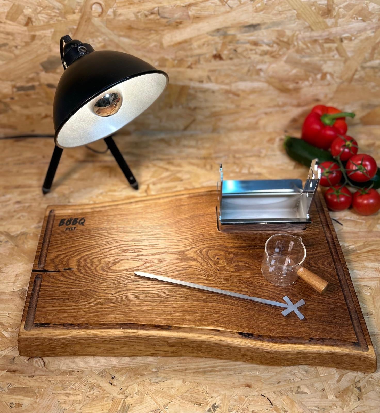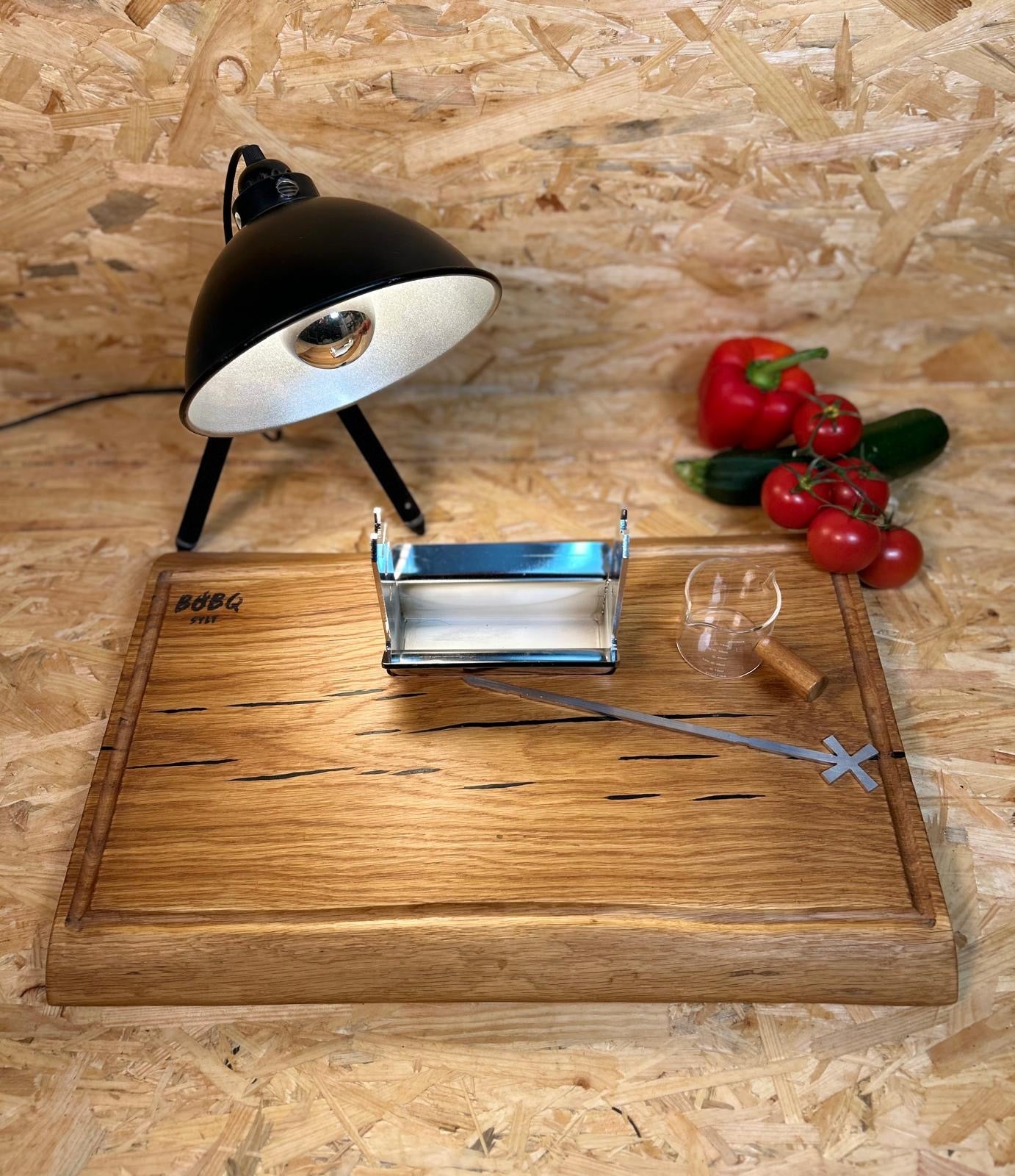 Der BoBQ-Tischgrill ist einmalig. Angefangen beim Feuer, welches durch das Verbrennen von hochprozentigem Rum entsteht, bis zum handgefertigten Schneidebrett aus Eiche. Ein Geschmackserlebnis und absoluter Hingucker für tolle Abende mit Freunden und Familie.